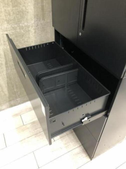 - 両開きタイプは扉が180度開き、通路の邪魔になりません。ラテラルタイプは引出しが限界まで出せ、出し入れ楽々。