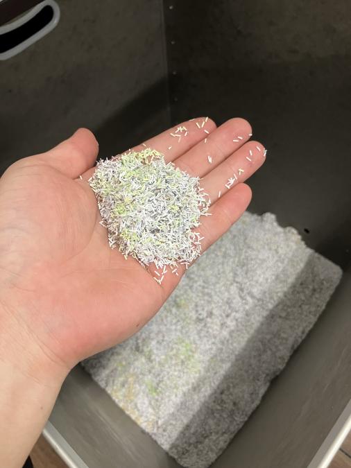 裁断した紙が粉吹雪に使えそうなくらい細かいです!
