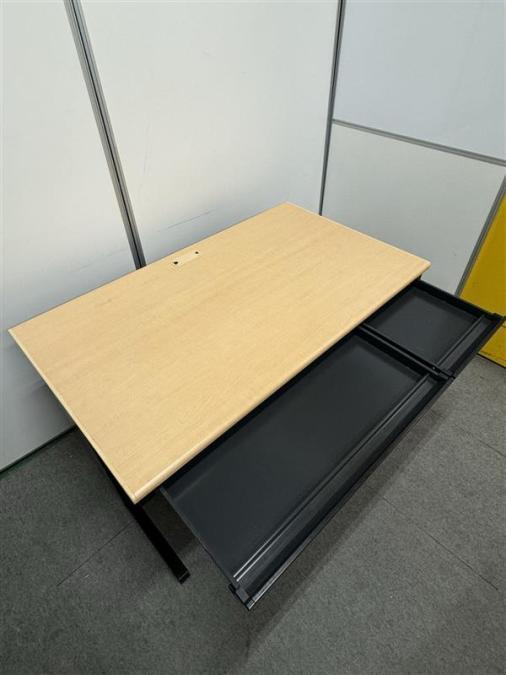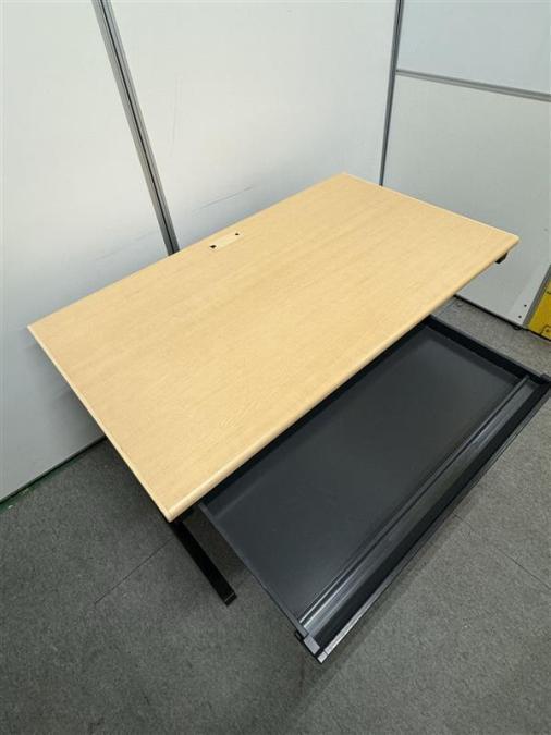 【ベーシックな使いやすさ・ローコストの引き出し付きデスク!】■プラス (PLUS) 製 フラットラインシリーズ 平デスク W1200mm 引き出し付(日焼け有) ■本体:ホワイト 天板:木目ナチュラル(メープル調) 【弊社使用欄:A01040783/A01035962】