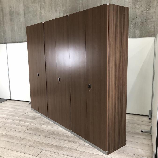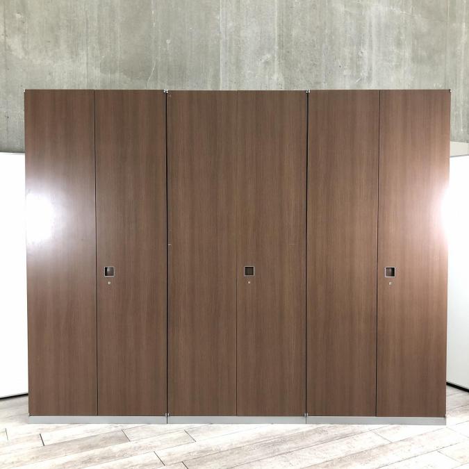【おしゃれな木目調のワードローブセットが入荷!】■オカムラ(okamura) レクトライン ワードローブセット ■W2700㎜(単体:W900㎜) ■木目調ブラウン(本体:シルバー)- 春日部・越谷店