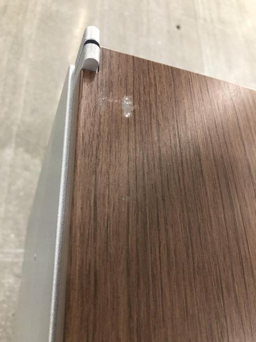 - かなり強い黄ばみ・変色が商品全体にある。(例、天板、正面、背部、サイド部分にある。)