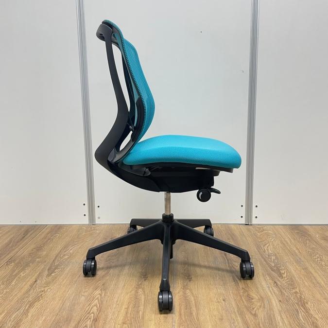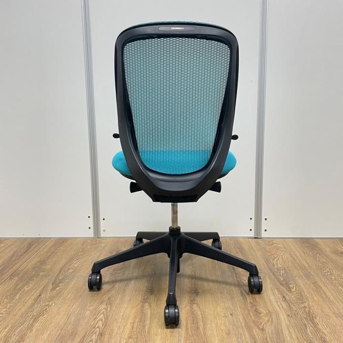 オカムラ製 シルフィーシリーズ ブルーグリーン ブラックフレーム 背面メッシュ 前傾機能チェアの代名詞! 肘無しローバックチェア!!- 京都東寺店