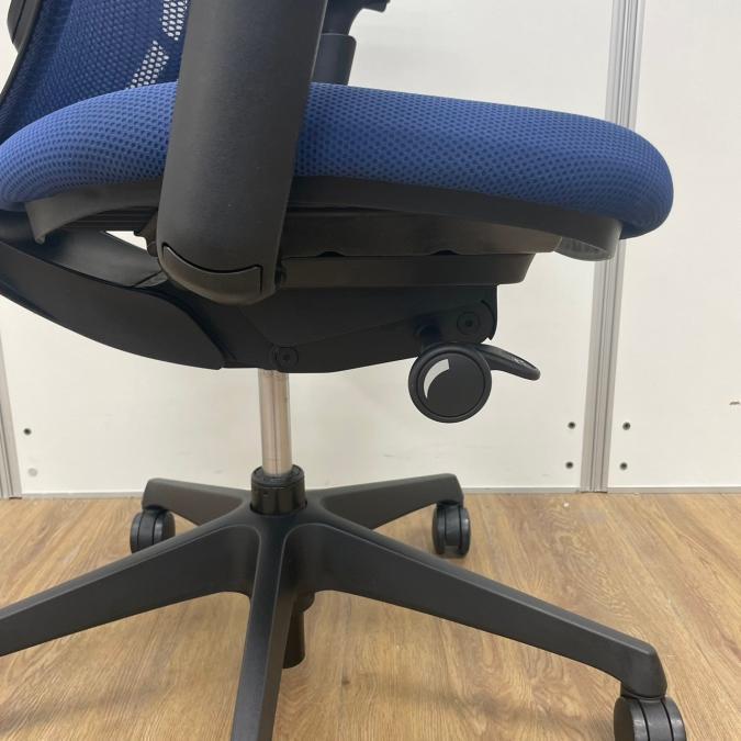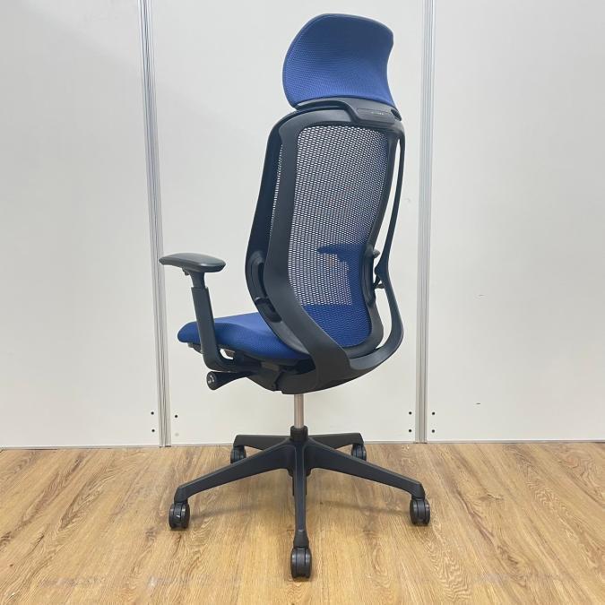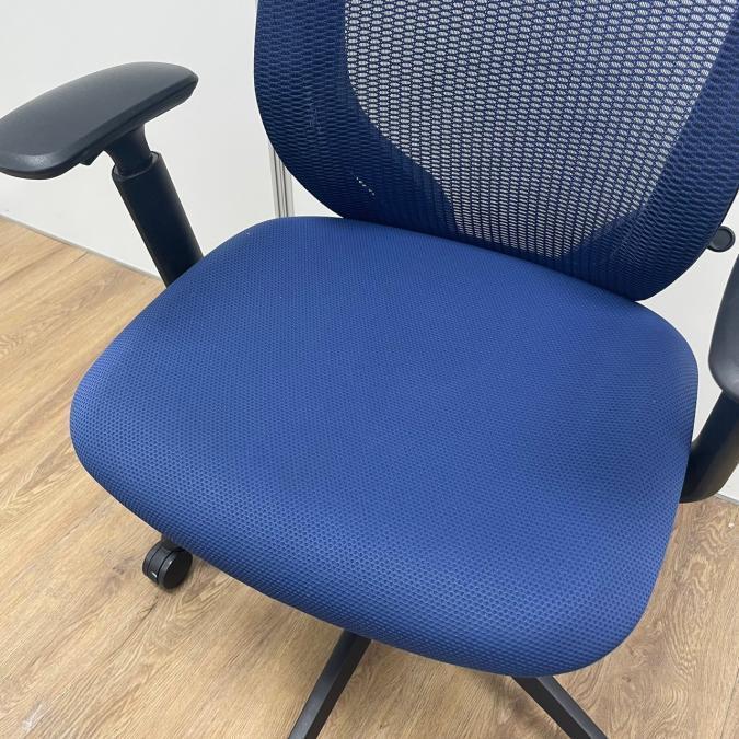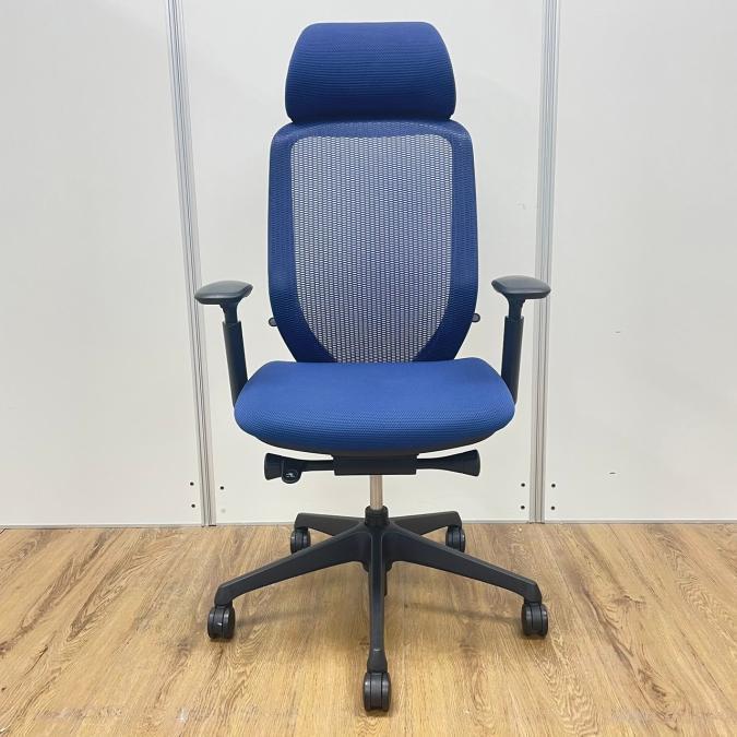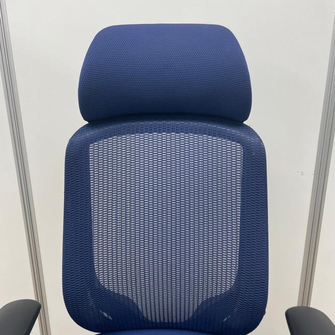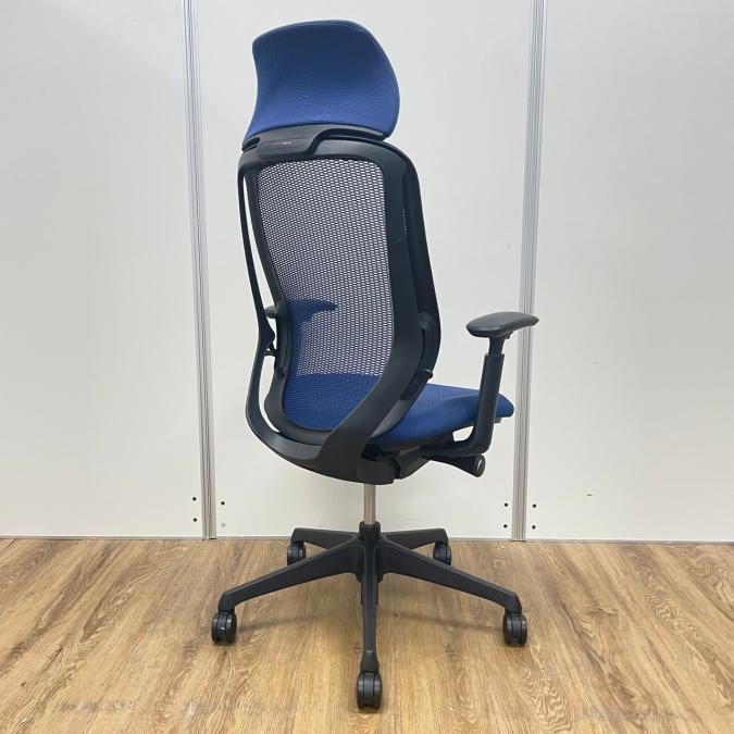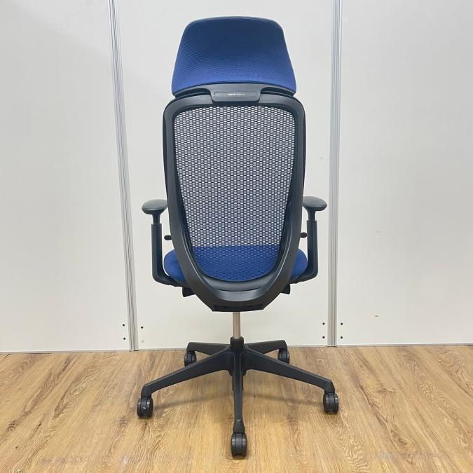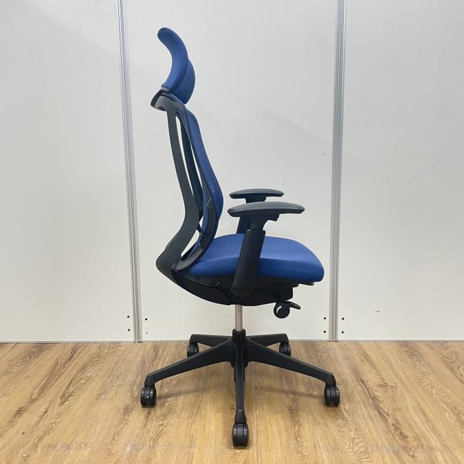 【訳あり品:上下昇降不可】オカムラ製 シルフィーシリーズ ネイビーブルー ヘッドレスト付 樹脂脚 アジャスタブル※可動肘 肘付きハイバックチチェア!!- 京都東寺店