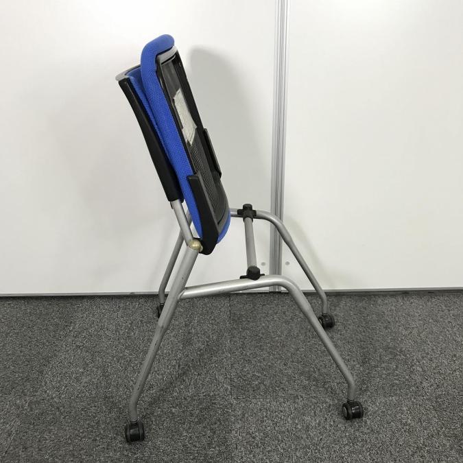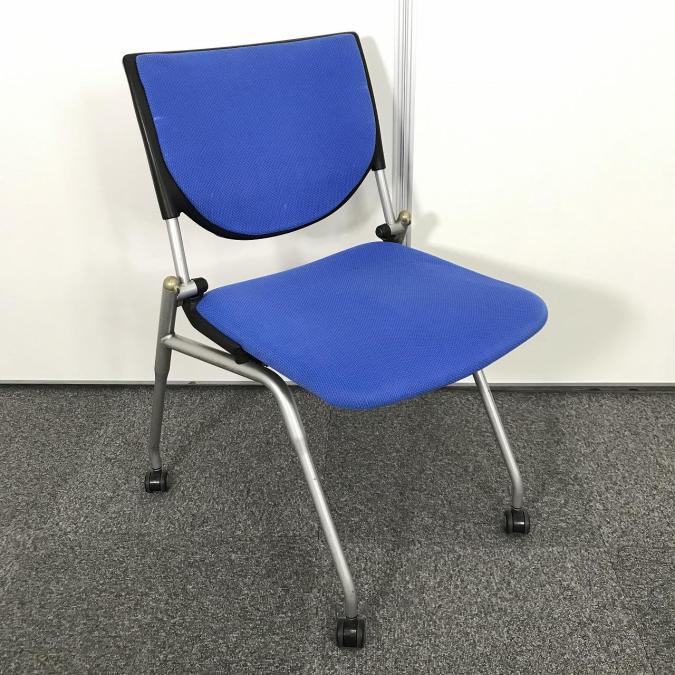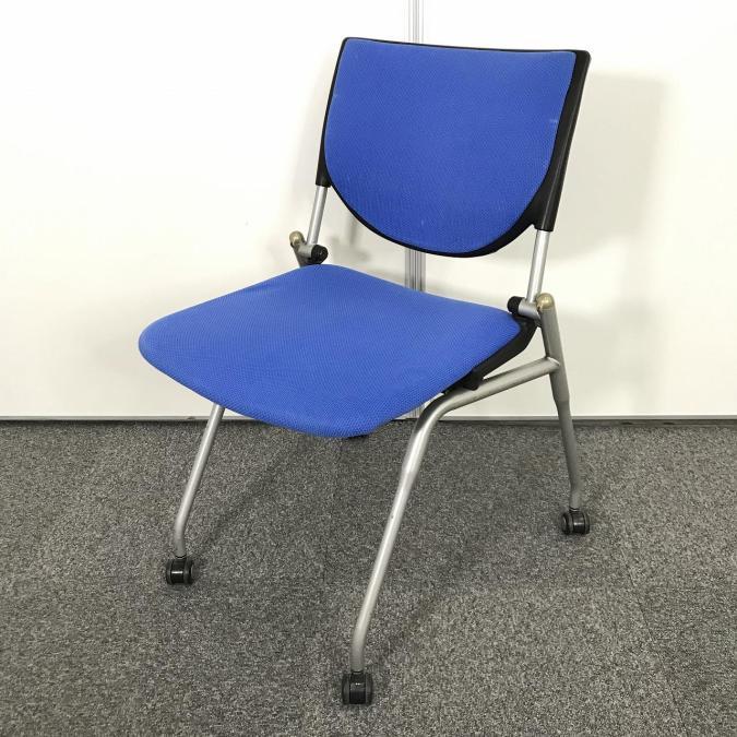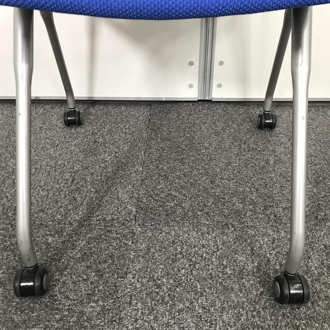 【会議室にピッタリ!コンパクト設計で収納がしやすい!】■オカムラ プロスタックシリーズ ネスティングチェア ミディアムブルー ■フレキシブルに使えるキャスター付!【在庫入替セール品!(本在庫限定価格)】