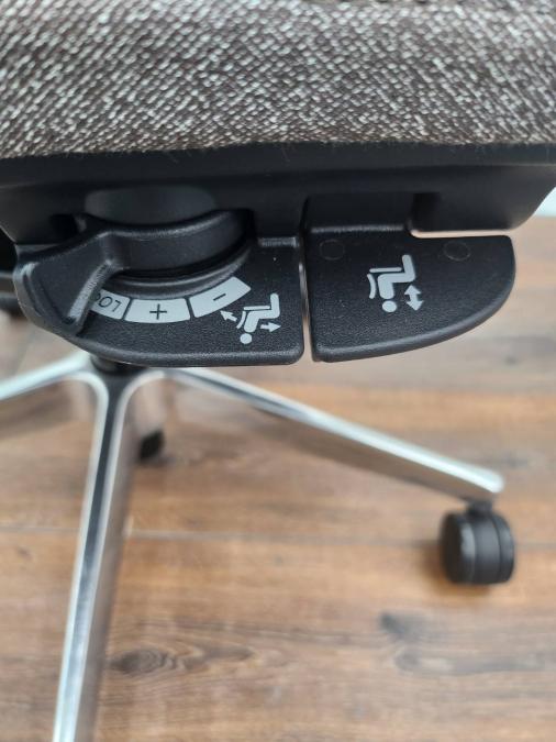 - 座面の高さ調節や背と座がシンクロしてスライドするアンクルチルトリクライニングなど、基本的な調節機能を搭載。
