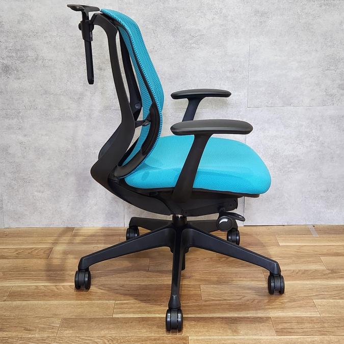 【福岡西店撮影】【人気のシルフィーチェア】オカムラ(okamura)シルフィチェア メッシュ仕様 ■色:ライトブルー ブラックフレーム仕様 固定肘付き【福岡オフィス家具】【福岡中古家具】【中古事務什器】【中古チェア】【中古椅子】- 福岡西店
