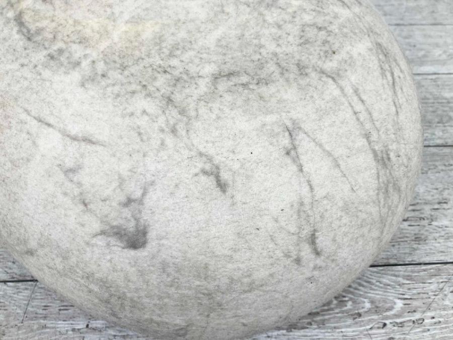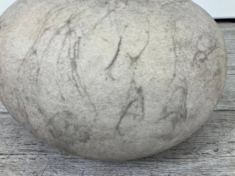 メリノウールを使った素晴らしい作品で、色が異なるウールを重ねることで石のマーブル模様を描いています。