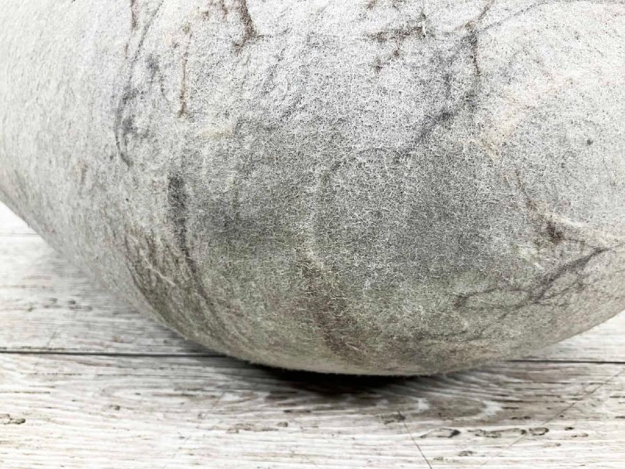 メリノウールを使った素晴らしい作品で、色が異なるウールを重ねることで石のマーブル模様を描いています。