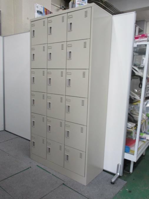 ほぼ未使用!【状態良好】18人用シューズボックス 扉付・鍵なし(3列6段) 網棚なし ロッカー【中古オフィス家具】- 春日部・越谷店