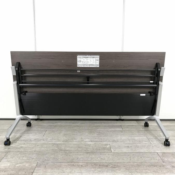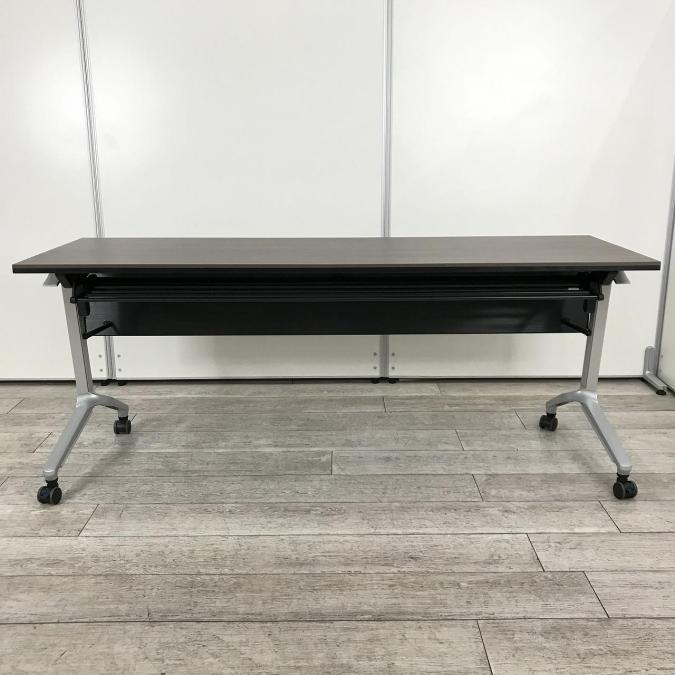 【入替セール】【シックなダークカラー木目調天板!】■コクヨ製 コンフェスト (CONFEST) サイドスタックテーブル ■幅1800㎜ 天板:木目ダーク パネル:ブラック キャスター付き- 在庫数