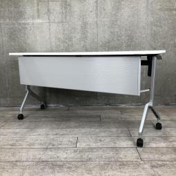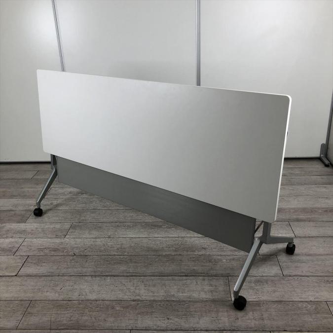 【スタイリッシュで美しいデザイン!】【天板を畳んでコンパクトに収納可能】■コクヨ製 サイドスタックテーブル W1800×D600×H720mm ■ホワイト ■幕板パネル付- 在庫数