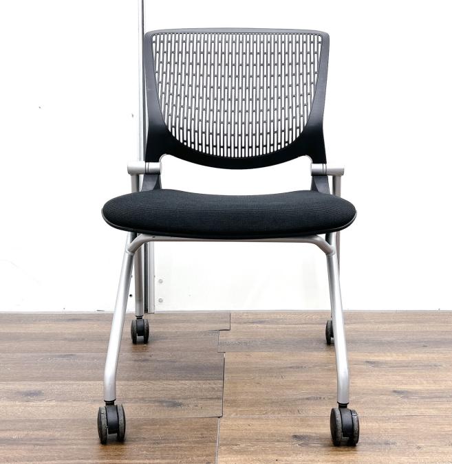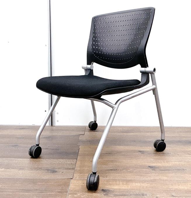 【5脚入荷】【状態要考慮】キャスター樹脂剥がれあり⇒大人気ネスティングタイプミーティングチェア⇒グラータ(Grata)※ブラックカラー◆オカムラ製- 埼玉本店
