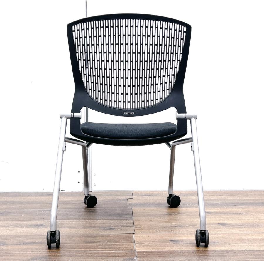 【しなやかにワーカーを受け止める洗練されたデザイン!使わない時は重ねて収納可能!】■オカムラ(okamura)製 グラータ (Grata) 肘無し ミーティングチェア ネスティングチェア ■背面樹脂メッシュ/背パッドなし ■座面:ブラック ■キャスター付