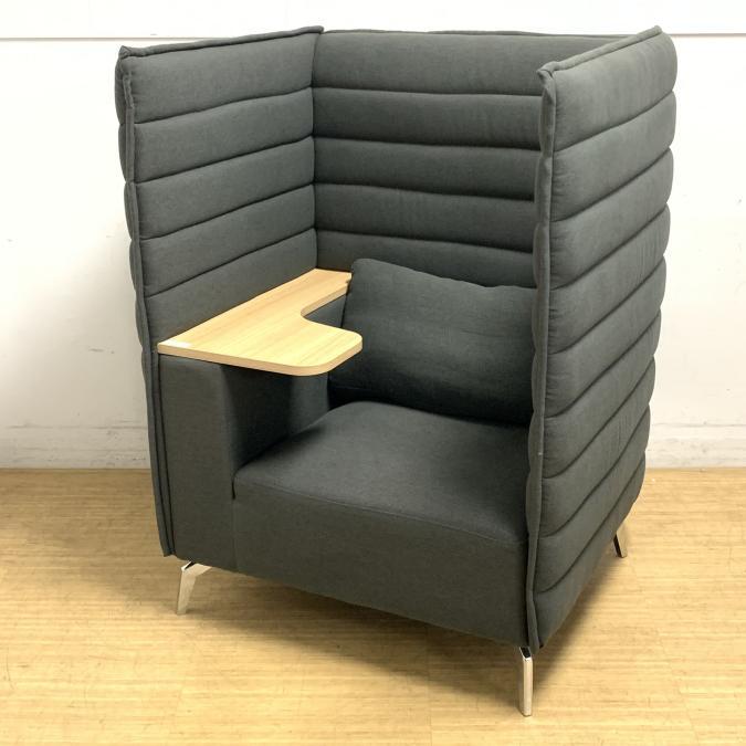 【中古】オフィスコム製・ハイビスシリーズ ハイバックソファ 1人掛け パネル付き テーブル付き お買い得な1人用ブース【ABW】- 名古屋千種店