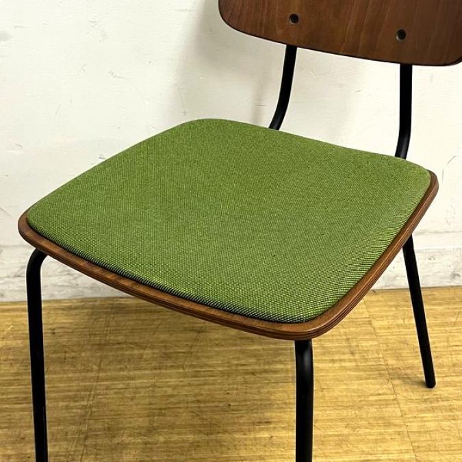 濃いビーチ系の木目調・グリーン系のクッション部分・ブラックの脚の抜群のカラーリングで