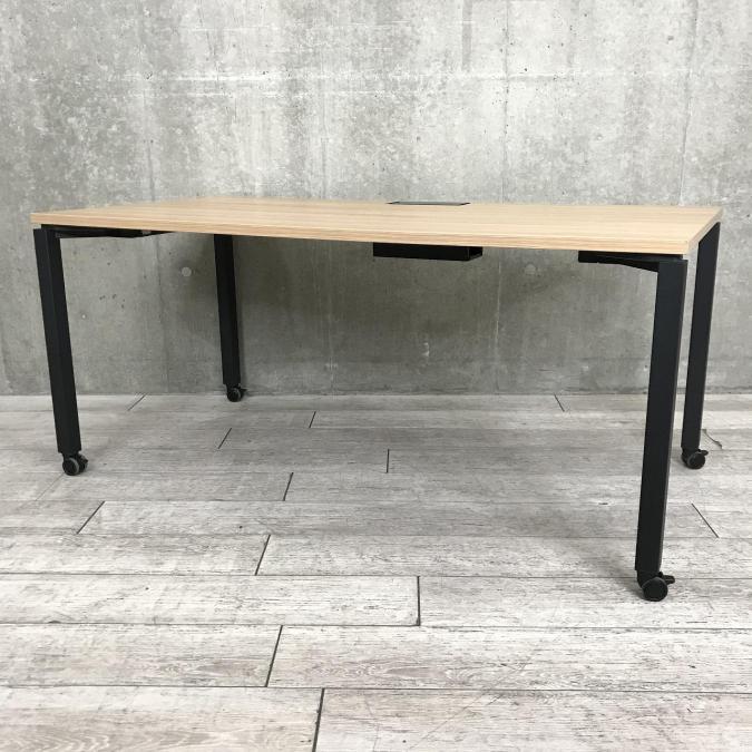 【遠方倉庫在庫品】コクヨ製のミーティングテーブル(ワークテーブル) 天板 ナチュラル メラミン化粧板 脚:フラットシルバー 【RA】