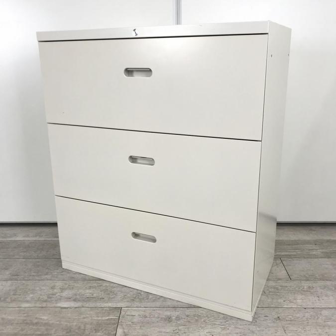 【入替セール】【ファイル整理に便利な引出し型!】■クロガネ (KUROGANE) 3段ラテラル書庫 ■ホワイト 幅900 奥行450mm ■シリンダー錠- 在庫数