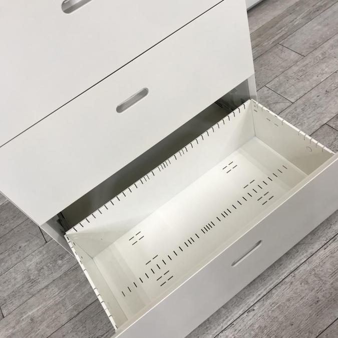 引出しのストロークが大きく、奥まで引き出すことが出来るので収納物の検索・出し入れがスムーズに行えます。