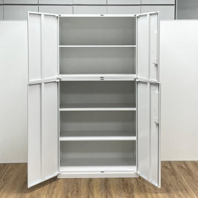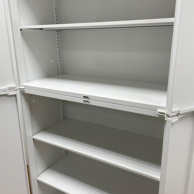 ウチダ製 HSシリーズ ホワイトカラー 上2段、下3段収納可能 両開き書庫 上下書庫セット!!- 京都東寺店
