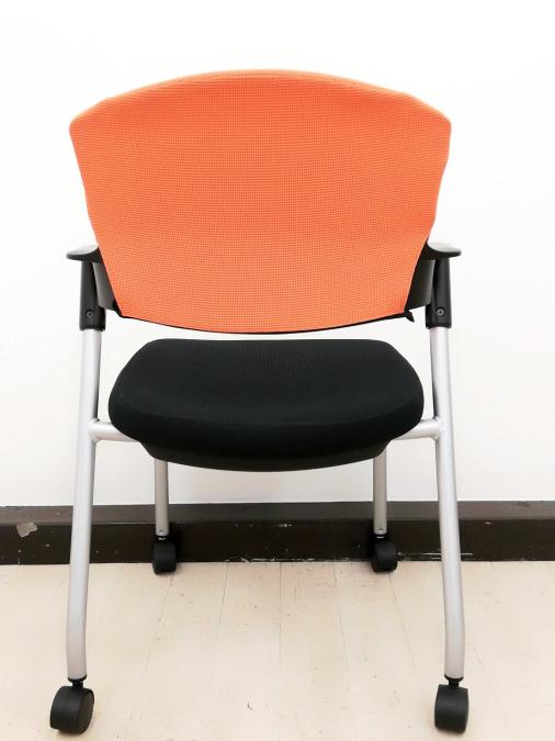 【シンプルスマートなスタッキングチェア!】■コクヨ(KOKUYO) プロッティ(Protty)チェア スタッキングチェア ミーティングチェア ■肘付き キャスター付き ■オレンジ【2505】弊社使用欄【A01018053】