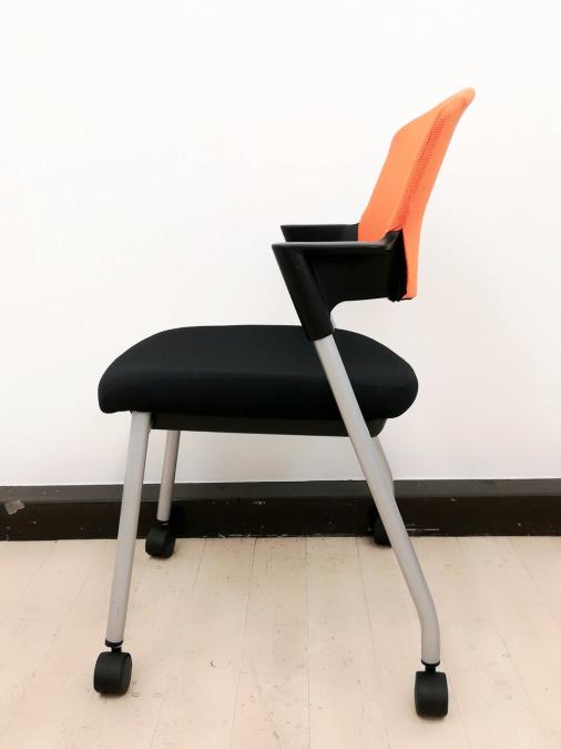 【シンプルスマートなスタッキングチェア!】■コクヨ(KOKUYO) プロッティ(Protty)チェア スタッキングチェア ミーティングチェア ■肘付き キャスター付き ■オレンジ【2505】弊社使用欄【A01018053】