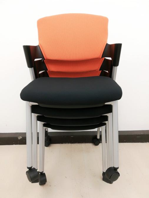 【オフィスを明るくするオレンジ色のミーティングチェアが入荷いたします】■コクヨ(KOKUYO)製 プロッティ スタッキングチェア ミーティングチェア ■固定肘 ■キャスター付 ■背面カバー付き ■背面オレンジ×座面ブラック オフィスバスターズ 神戸店 【T1】