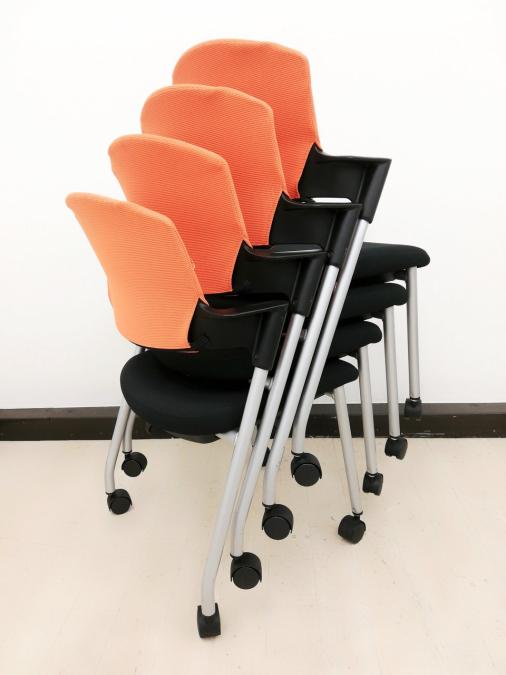 【シンプルスマートなスタッキングチェア!】■コクヨ(KOKUYO) プロッティ(Protty)チェア スタッキングチェア ミーティングチェア ■肘付き キャスター付き ■オレンジ【2505】弊社使用欄【A01018053】