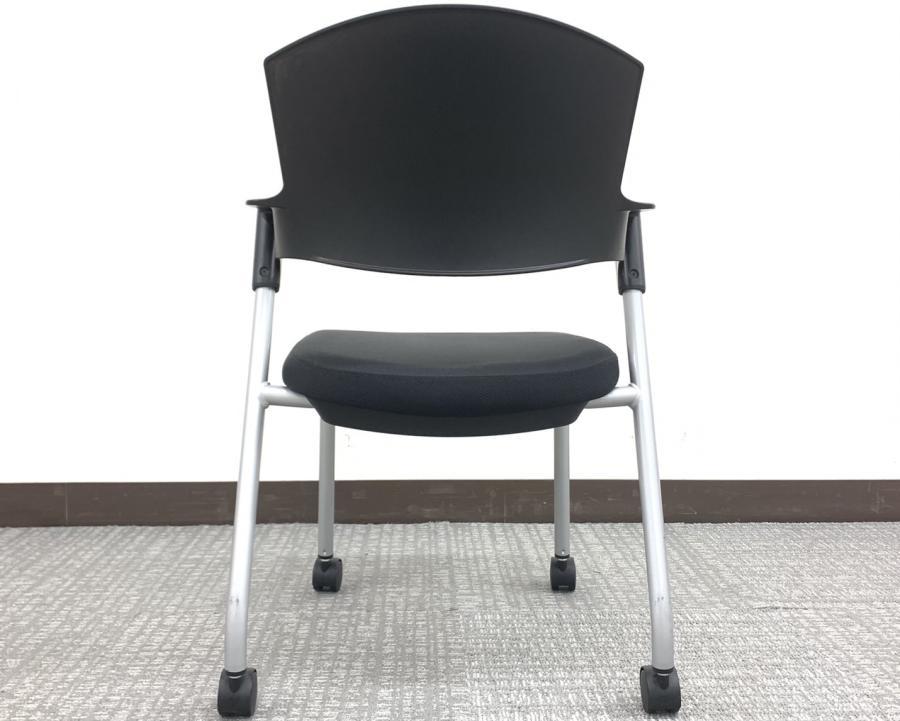 【シンプルスマートなスタッキングチェア!分厚いクッションで長時間でも快適な座り心地!】■スタッキングチェア 肘付ミーティングチェア ■固定肘 ■キャスター付 ■ブラック ■背面樹脂/コクヨ(KOKUYO/プロッティ