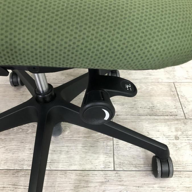 - 座面右下のダイヤル操作で、リクライニングの強弱調整が行えます。これまでのダイヤル式よりも、少ない回転数で、最弱?最強の調整が可能です。