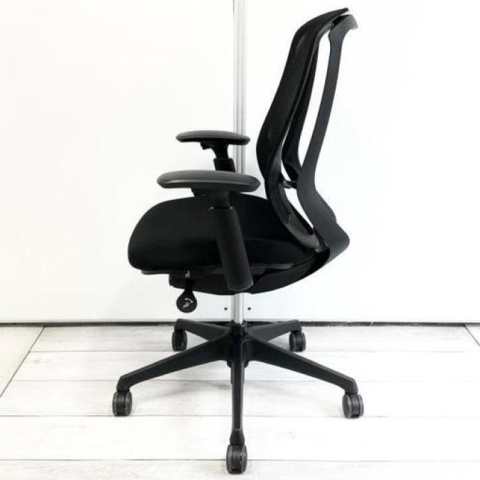 【限定1脚】【三次元曲面が身体にフィット!前傾チルト機能付き大人気メッシュチェア!】■オカムラ(okamura)製 シルフィーチェア(Sylphy) 肘付きハイバック ■背面メッシュ ■可動肘 ■ブラック×ブラックシェル ■ランバーサポート付き