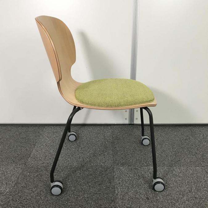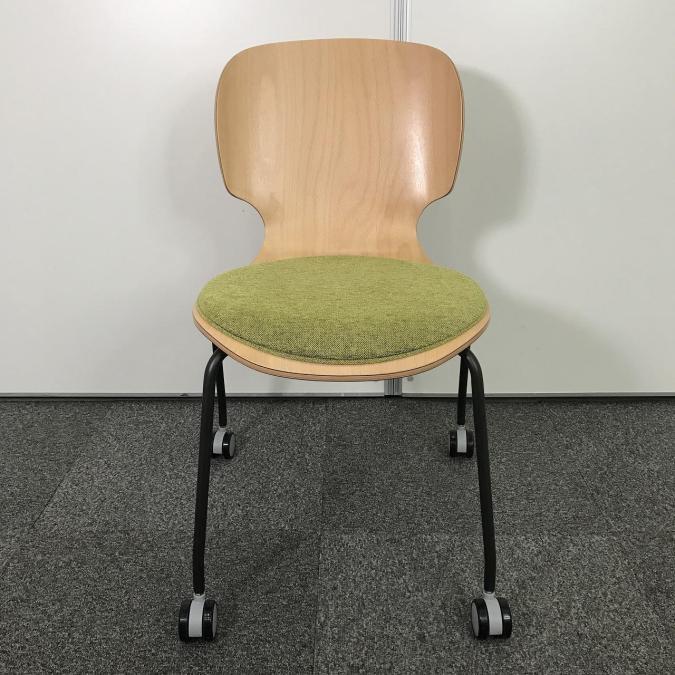 【入替セール】【カフェ調オフィス・リフレッシュスペースにおすすめ!重ねて収納可能!】■ クレス製 (CRES) HABES (ハベス) ACタイプ スタッキングチェア ■キャスターつき 木製シェル クッション付き ■グリーン- 在庫数