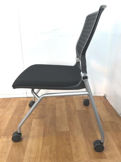 【しなやかにワーカーを受け止める洗練されたデザイン!使わない時は重ねて収納可能!】■オカムラ(okamura)製 グラータ (Grata) 肘無し ミーティングチェア ネスティングチェア ■背面樹脂メッシュ/背パッドなし ■座面:ブラック ■キャスター付