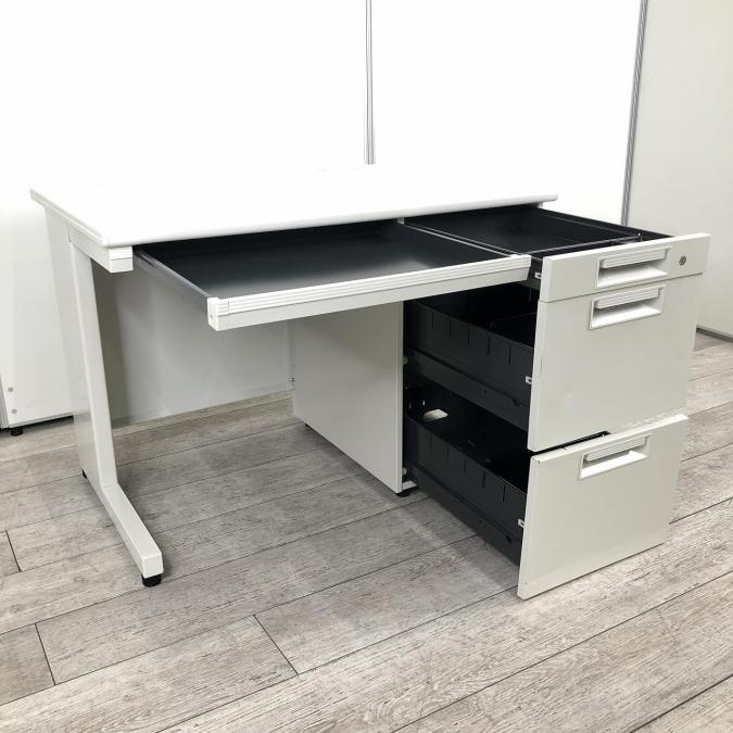 【収納も充実で使いやすい!ホワイトの片袖机】■プラス LEED 片袖机 幅1000mm ■ホワイト ■シリンダー鍵【W1000㎜タイプのコンパクト事務机!】- 在庫数