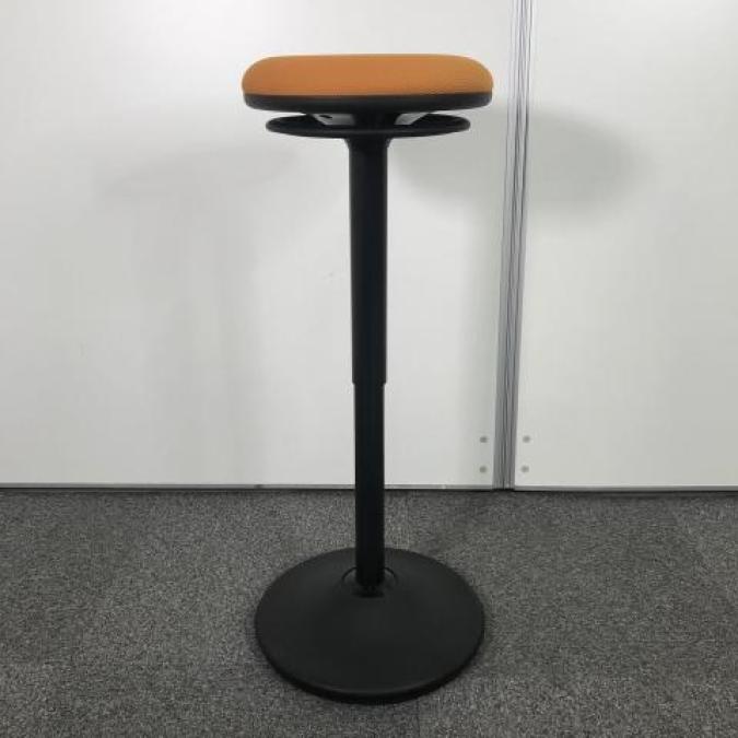 【「座る」と「立つ」のいいとこ取り!】■オカムラ(okamura) ピルエット カウンターチェア スツール ■オレンジ シェル:ブラック【高さ調節可能なパーチングスツール】- 福岡博多店