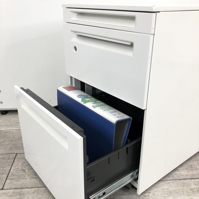【2台限定】【定番収納!使いやすさ抜群のキャスター付き3段ワゴン!】■オカムラ(okamura)製 アドンバス (ADVANCE) 3段ワゴン デスクイン H560mm ■ホワイト シリンダー錠 オフィスバスターズ 梅田本店- 大阪梅田本店
