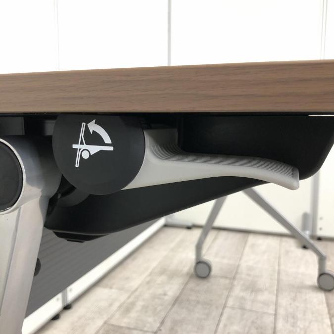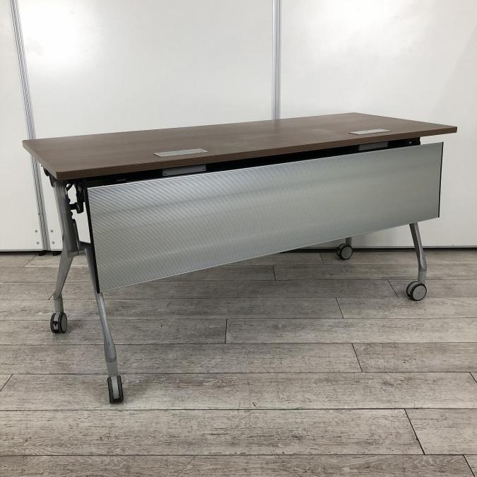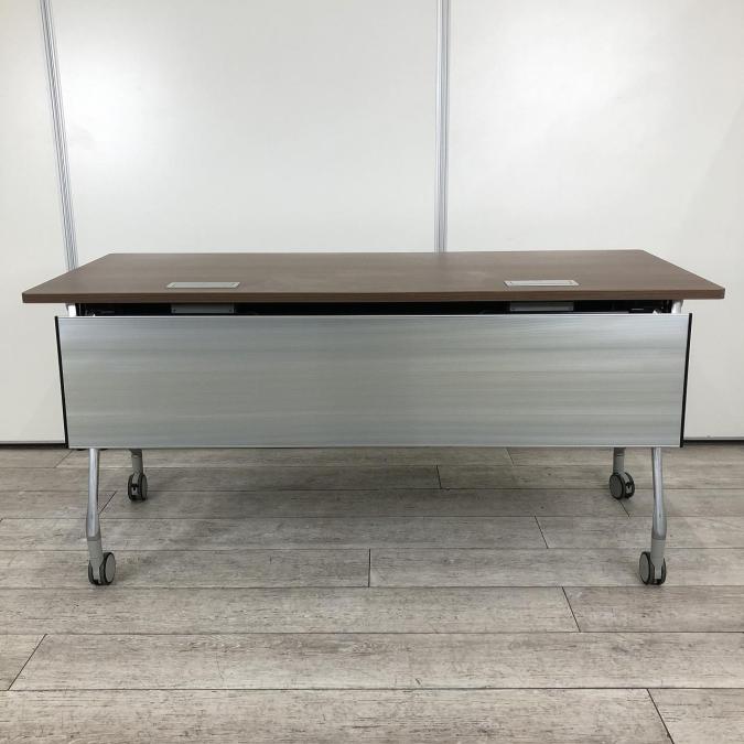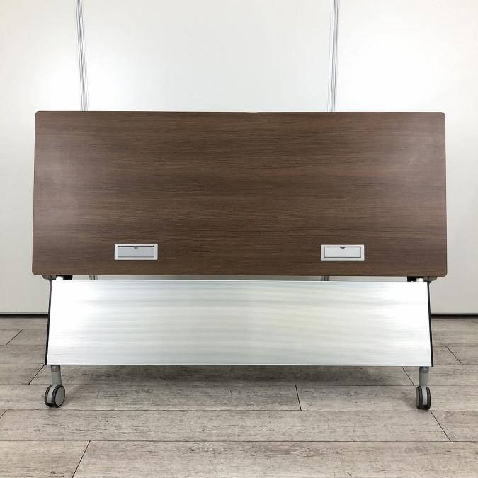 【スタイリッシュなデザインで高品質!フレキシブルに使える便利アイテム!】■オカムラ(okamura)製 インターアクトNT サイドフォールドテーブル (W1500×D600×H720) ■ブラウン ■幕板パネル付- 足立・葛飾店