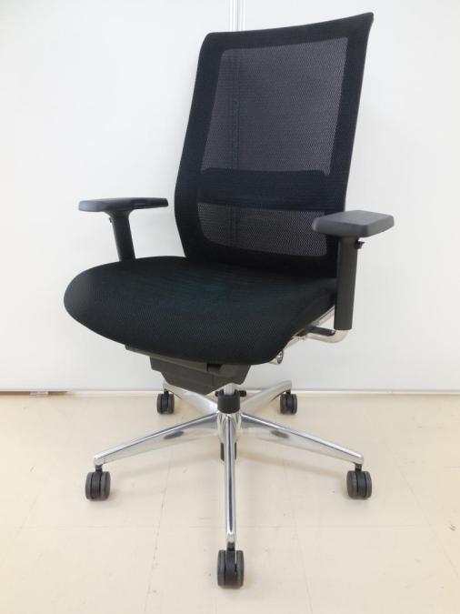 【スマートなデザインの上質チェア!】■コクヨ製 エアフォート 肘付ハイバックチェア ■ブラック ランバーサポート付き 可動肘