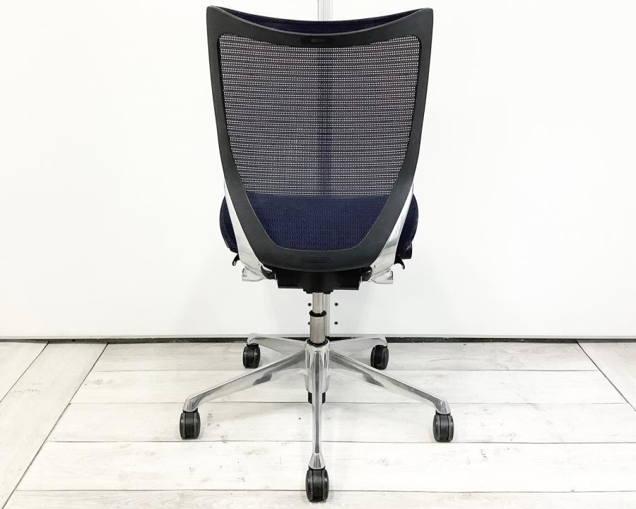 【2脚限定!!】■オカムラ/バロンチェア/メッシュ/ネイビーブルー 座面:メッシュ 肘無しローバックチェア ポリッシュ脚- オフィスチェア店