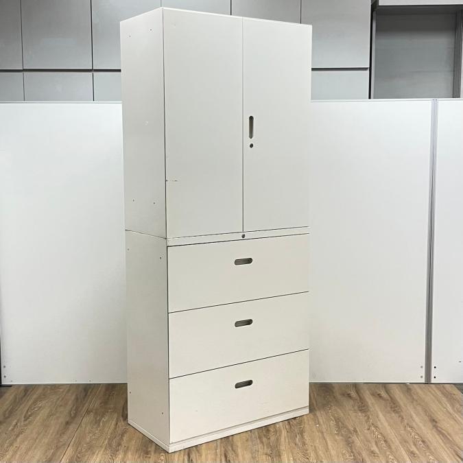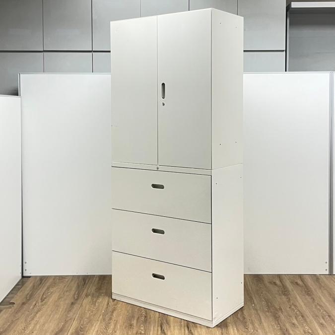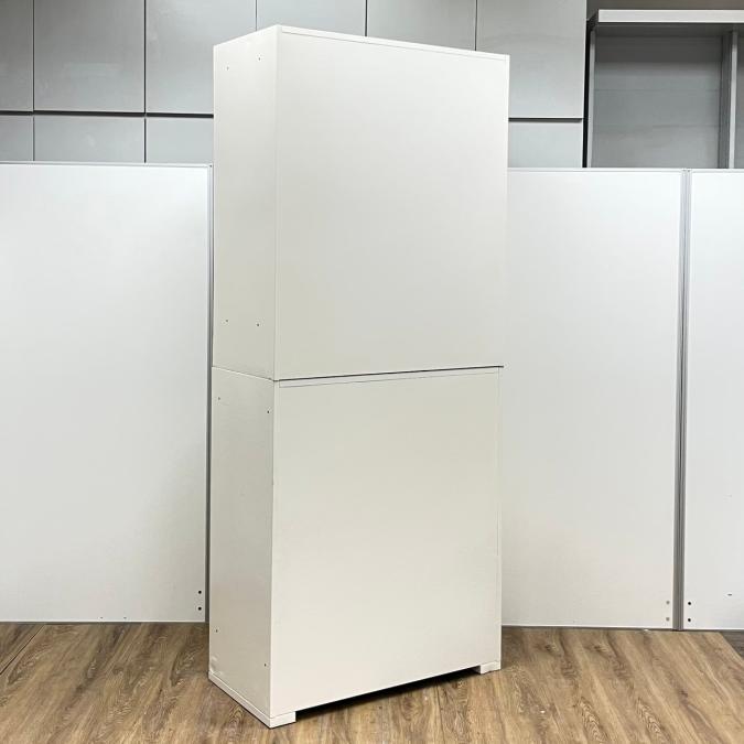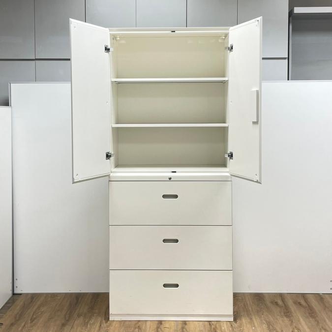 【訳アリ特価品】クロガネ製 ホワイトカラー 抜群の収納力で書類をスッキリ整理 上:両開き、下:3段ラテラル 上下書庫セット!!- 在庫数