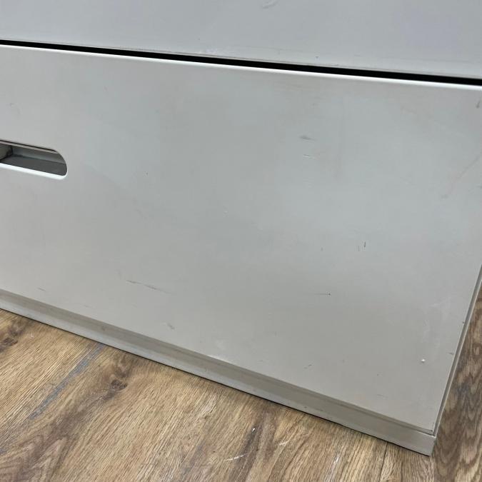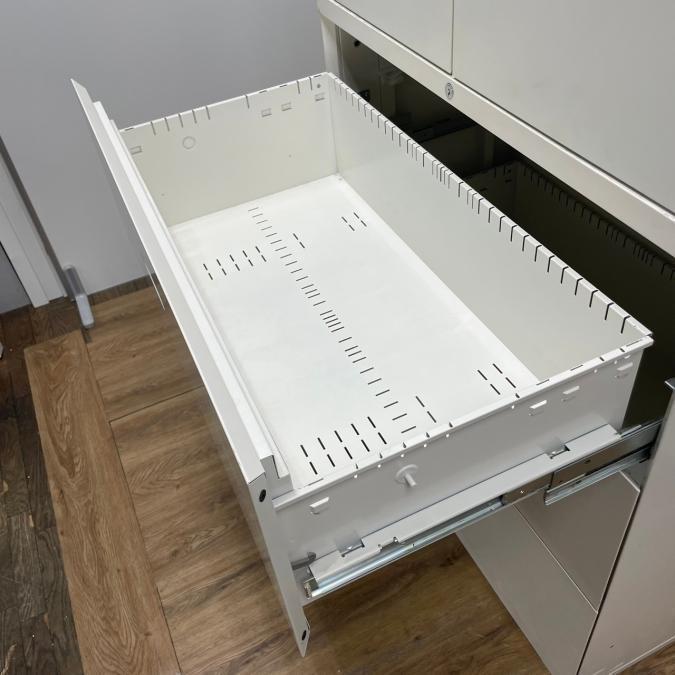 下置きのラテラル書庫は引き出しタイプになっており屈まず負担の少ない書庫になっております。