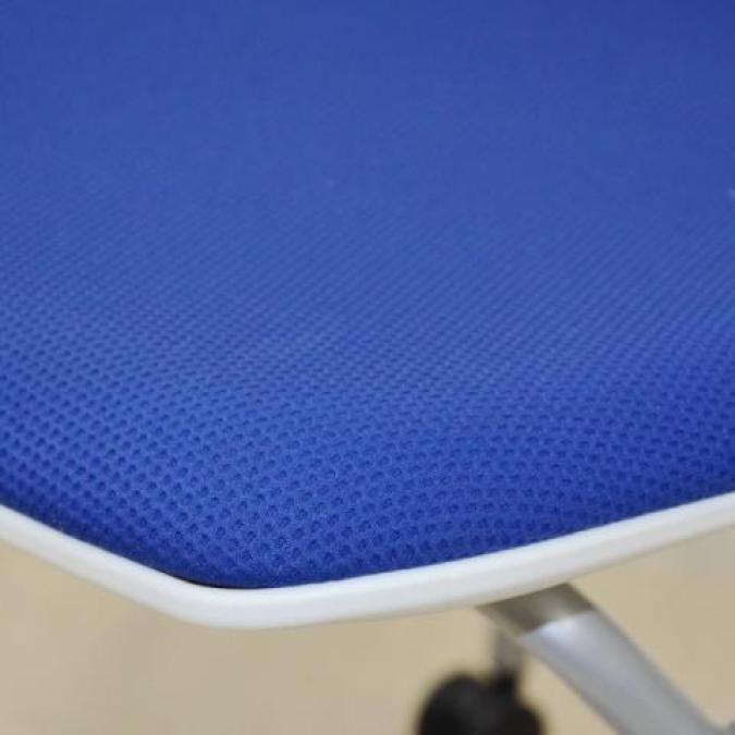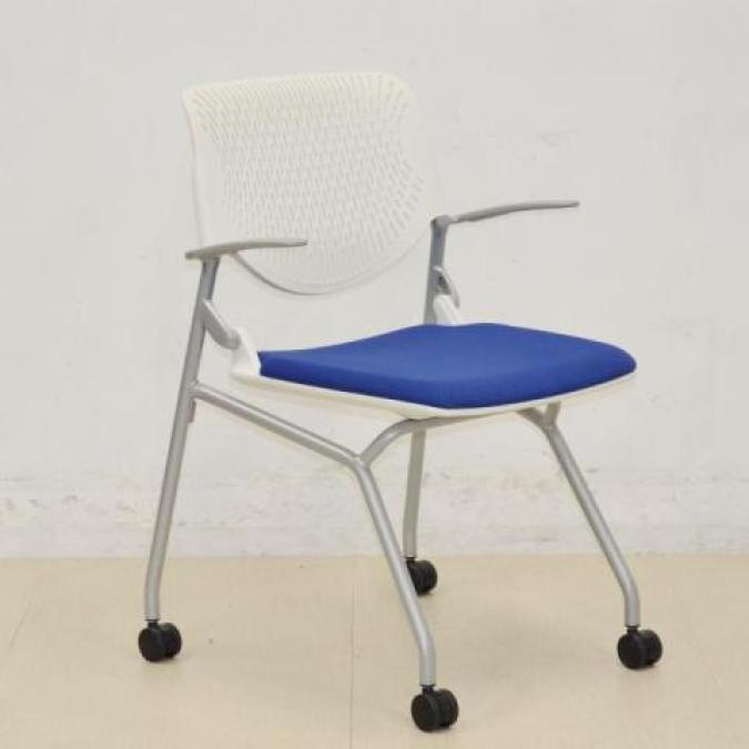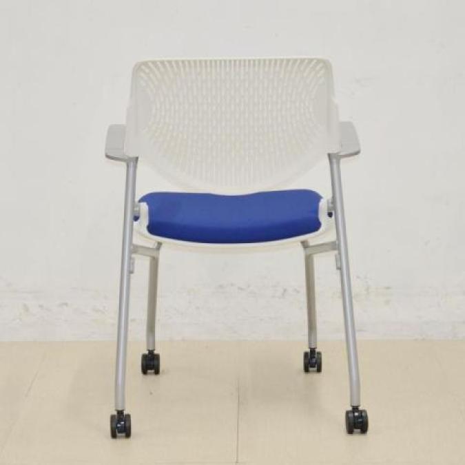 【背のスリットデザインはベンディング機能!シンプルなデザインで使いやすいミーティングチェア!】■オカムラ(okamura)製 ルナ(Runa)チェア ネスティングチェア ミーティングチェア キャスター付 ■背面樹脂メッシュ:ホワイト/座面:ネイビーブルー【使わない時は平行に重ねて収納!】
