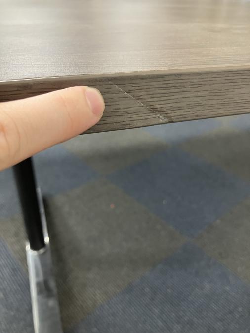 - 壊れている天板歪み、アジャスター無し、キャスター使用不可のようにそのテーブルの本来の効用を果たすための機能に不具合がある。