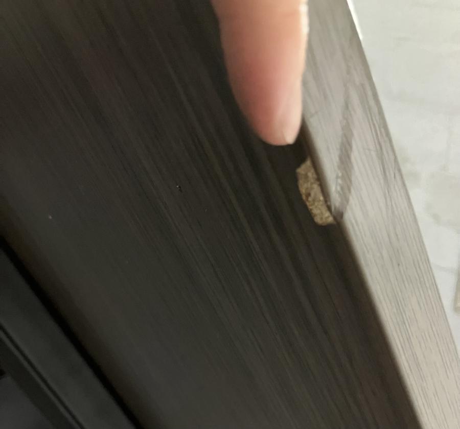 - かなり強い濃い黄ばみ・変色が商品全体にある。(例、天板、幕板、棚板、サイド部分、脚部等にある。)