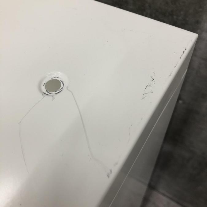 - 目立つ箇所あり傷・凹みが多数、深い傷・凹みが一部ある。(例、天板、正面、背部、サイド部分にある。)