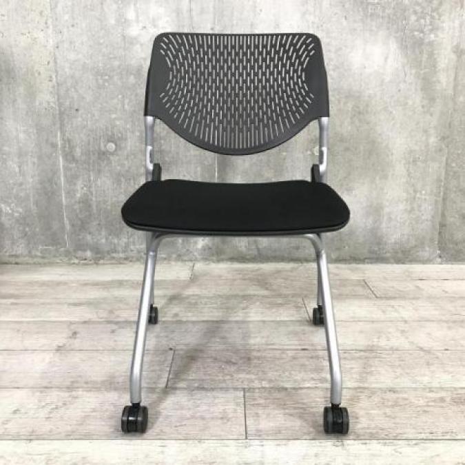 【関東倉庫在庫品】【フレキシブルに使える!便利なネスティングチェア!】■オカムラ(okamura) ルナチェア(RUNA) ネスティングチェア ミーティングチェア 肘無し ■キャスター付 ■背面樹脂メッシュ(ヌードタイプ) ■ブラック 【弊社使用欄:A01015956】【ECBMC】