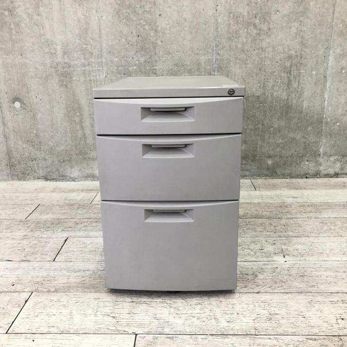 【スタンダードなデザインで使いやすい!】■イトーキ(ITOKI)製 CZシリーズ 3段ワゴン デスクインワゴン H620㎜ キャスター付 グレー シリンダー錠
