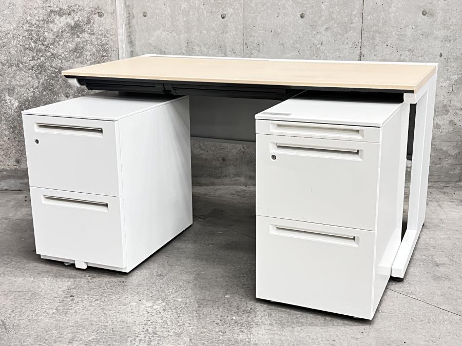 両袖机として使えます!【上長デスクの定番W1400平机+ワゴン×2のセット!配線カバーも充実の高品質デスク!】■コクヨ(KOKUYO)製 iSシリーズ 引き出し付き(右側の引き出し無し) 平机 ■ホワイト×ナチュラル天板サーキュラーバリューCO2削減量の算出について