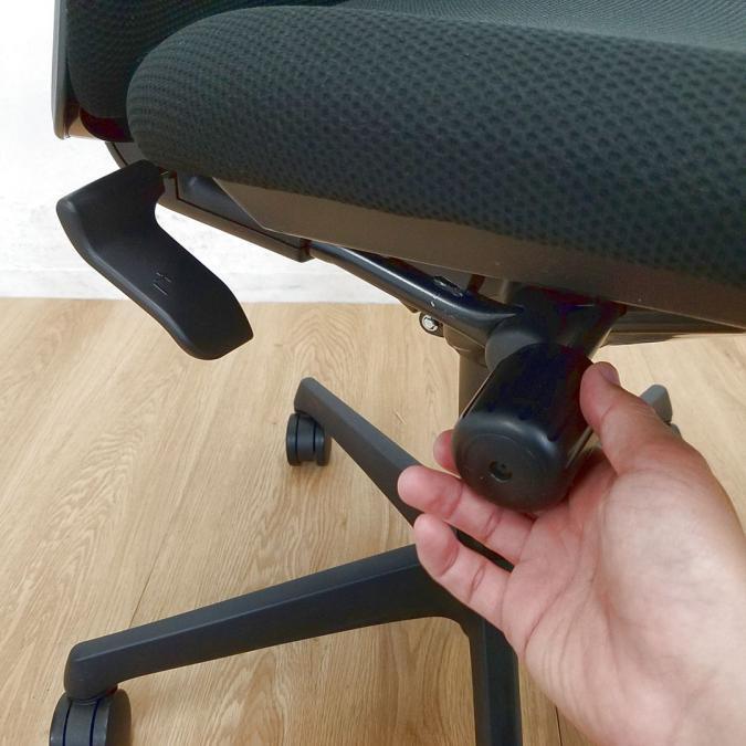 - 座面の高さは、上下ストローク最大92mmで無段階調節可能。フィットする高さに調整できます。