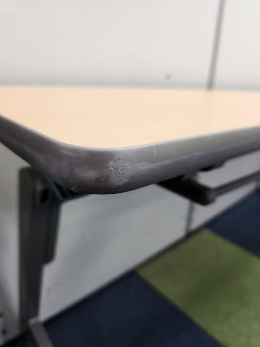 - 壊れている天板歪み、アジャスター無し、キャスター使用不可のようにそのテーブルの本来の効用を果たすための機能に不具合がある。