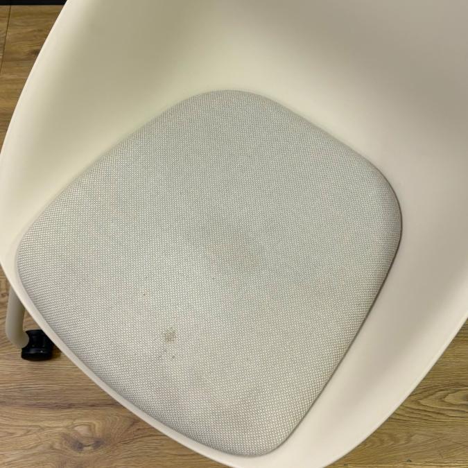 - かなり強い濃い黄ばみ・変色が商品全体にある。(例、座面・背もたれ、脚部等にある。)